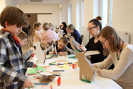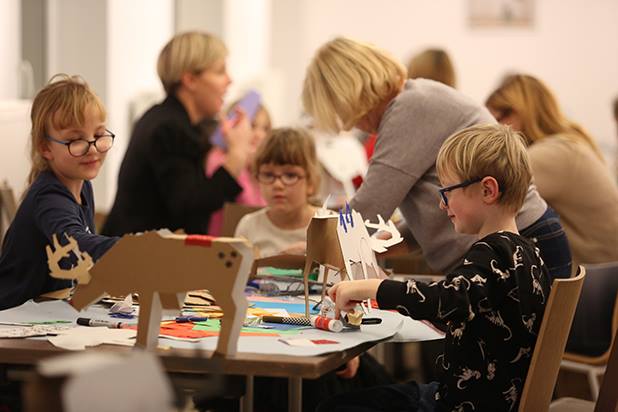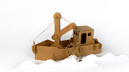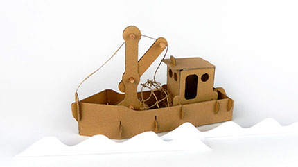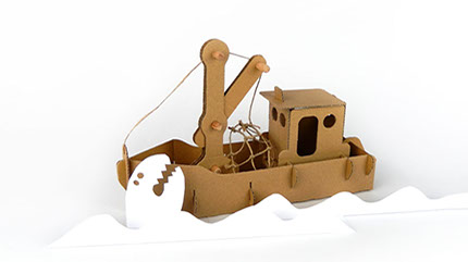 Wspólnie złożymy też kutry rybackie, zbudujemy latarnię morską, postawimy stragan rybny i zarybimy akwen tekturowymi stworami morskimi.